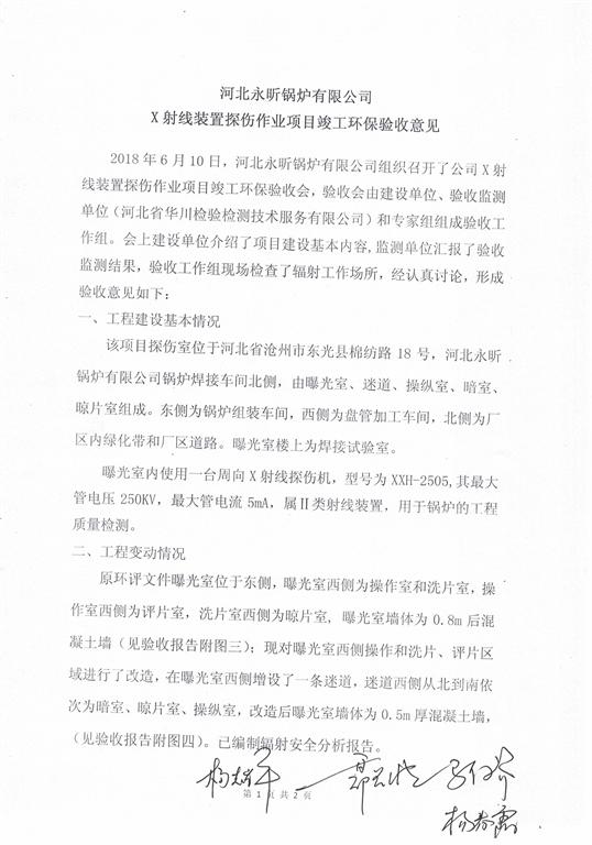 驗收報告及驗收意見-河北永昕鍋爐有限公司